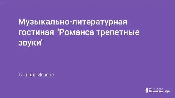 На уроке рассматриваются вопросы истории возникновения русского романса. Исполняются фрагменты романсов.