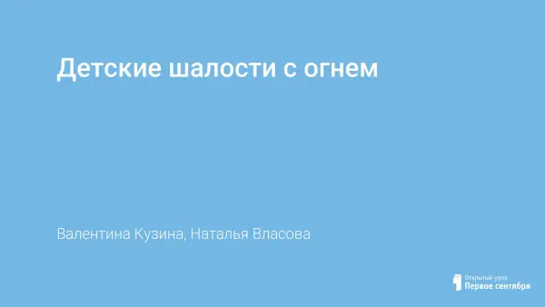 В предлагаемом занятии в доступной форме, в виде беседы, дети узнают об опасностях таких игр, знакомятся с правилами пожарной безопасности, с работой пожарных, со службой 01. Занятие-беседа сопровождается загадками, вопросами, стихами, зарисовками, помогающими лучше закрепить предложенный материал.