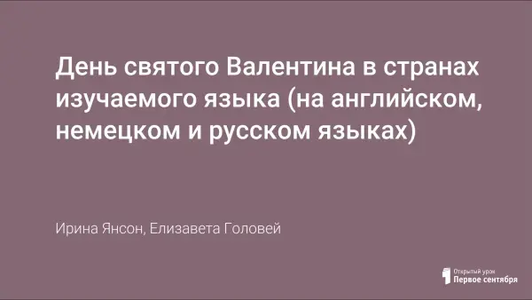 День святого Валентина в странах изучаемого языка (на английском, немецком и русском языках)