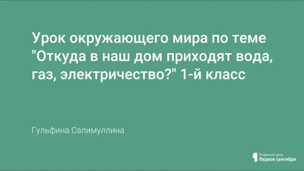 Урок окружающего мира по теме "Откуда в наш дом приходят вода, газ, электричество?" 1-й класс