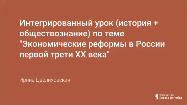 Урок проводится по блочно-модульной системе. Параллельно проводятся уроки истории по блоку: "Экономические реформы первой трети XX века" и уроки обществознания по блоку: "Современная экономка". Урок проводится в 11-х классах социально-экономического профиля.
