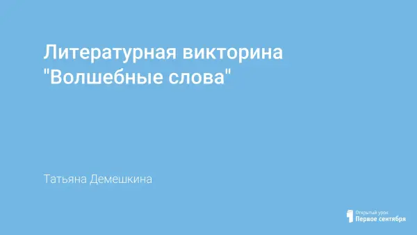 Литературная викторина рассчитана на учащихся 1–2-х классов. Цели урока: расширять кругозор у учащихся; развивать у ребят мыслительную деятельность, смекалку, сообразительность, находчивость; воспитывать интерес к чтению.