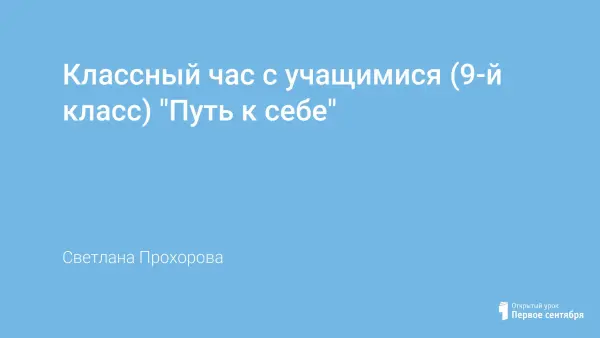Представлена разработка классного часа для работы с учащимися 9-го класса "Путь к себе", целью которой является расширение представления детей о самопознании, саморазвитии, самоопределении. Форма проведения классного часа – общение.