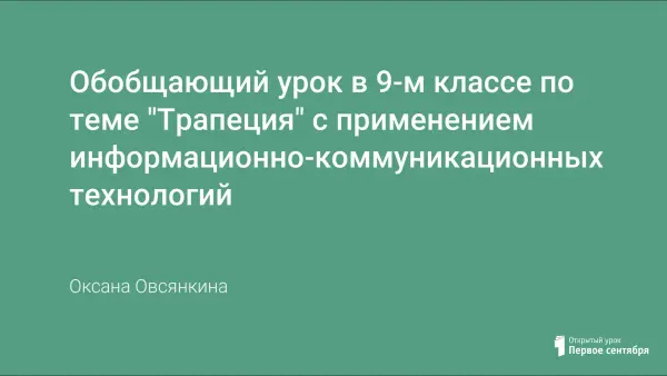На этом уроке учащиеся имеют возможность обобщить понятие трапеции, её видов. Но особое место занимают задачи, которые считаются наиболее сложными и охватывают разделы школьного курса геометрии 7–9-х классов. Они адресованы учащимся для подготовки к ЕГЭ.