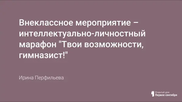 Представлена методическая разработка внеклассного общегимназического мероприятия – многопредметного интеллектуального соревнования учащихся 4-х классов.