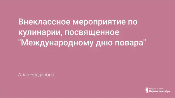 Урок знакомит с профессией повара. Учащиеся знакомятся с историей профессии. Участвуют в конкурсах.