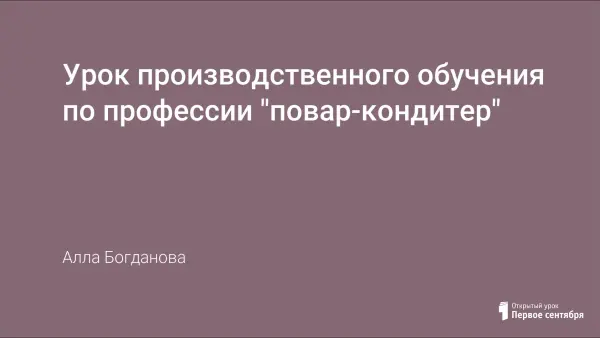 Урок по программе профессионального модуля профессии 19.01.17 «Повар, кондитер».