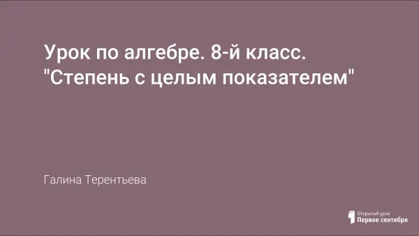 Конспект урока «Степень с целым показателем» позволяет провести обобщающий урок по данной теме наглядно, интересно, качественно благодаря использованию компьютерных технологий. На каждом этапе урока применяются презентации, выполненные в PowerPoint, тем самым повышая плотность урока. Знания учащихся по данной теме проверяются по тестам, позволяющих выбрать уровень сложности (всего 4 варианта).