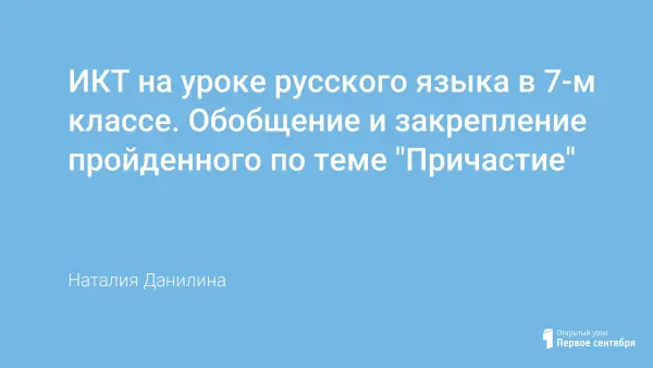 Урок обобщения и закрепления пройденного по теме "Причастие" можно провести в сопровождении презентации, что позволит разнообразить методы закрепления материала и воздействовать на различные ведущие каналы восприятия информации учащимися (аудиовизуальный, кинестетический и т.д.).