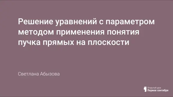 Урок призван совершенствовать навыки решения уравнений с параметром с помощью понятия «пучок прямых на плоскости». Помочь учащимся осознать ценность совместной работы. Тема «Задачи с параметрами» занимает особое место в подготовке к вступительным экзаменам в вузы по математике. Решение таких задач развивает исследовательские умения и навыки, что позволяет абитуриентам выдержать конкурсные испытания в престижные вузы.