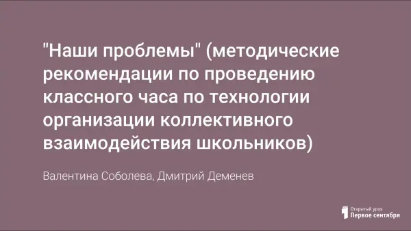 Данная работа представляет собой методическую разработку классного часа "Наши проблемы", где показаны способы включения обучающихся в совместную работу по составлению воспитательного плана класса. Работа с проблемно-ориентированной матрицей учит школьников выявлять и формировать проблемы, вычленять главные, формирует умения ставить цели и задачи.