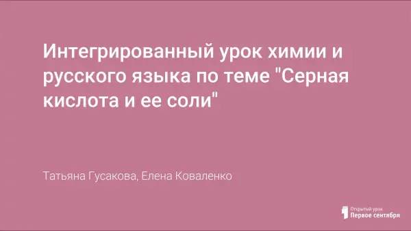 Интегрированный урок химии и русского языка по теме "Серная кислота и ее соли"