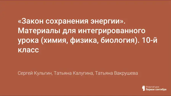 Цель урока: формирование у учащихся основных научных понятий единства природы через закон сохранения энергии в химии, физике, биологии. Рассматриваются возможности применения закона сохранения и превращения энергии в химии, физике, биологии.
