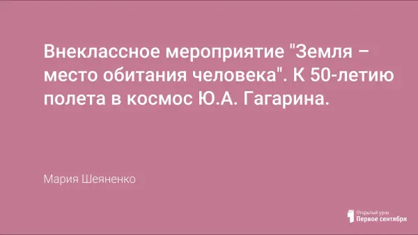 Характерной чертой системы обучения являются различные формы интеграции учебной и внеучебной деятельности, которая ярко представлена при проведении тематических недель. Представлена презентация к внеклассному мероприятию, посвященному празднованию 50-летия полета в космос Юрия Алексеевича Гагарина.