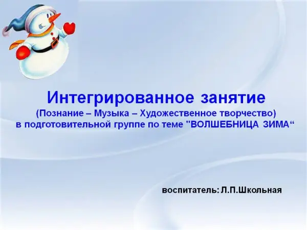 Интегрированное занятие в подготовительной группе по теме "Здравствуй, зимушка-зима!"