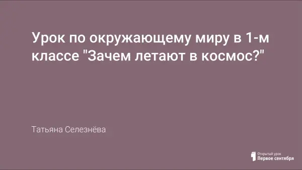 Урок окружающего мира в 1-м классе расширяет представление детей о космонавтике, знакомит с искусственными и естественными спутниками Земли и их значением для человека, первым космонавтом Ю.А. Гагариным, помогает детям самостоятельно ответить на главный вопрос урока: "Зачем летают в космос?"
