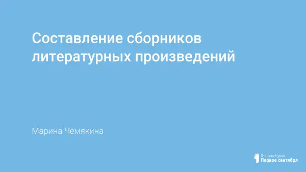 Урок решения проектных задач. На уроке обучающиеся учатся составлять сборники литературных произведений, собранных вместе по разным основаниям (произведения на одну тему, произведения одного автора, произведения одного жанра). Обучающиеся продолжают учиться работать в группах, защищать свои работы.