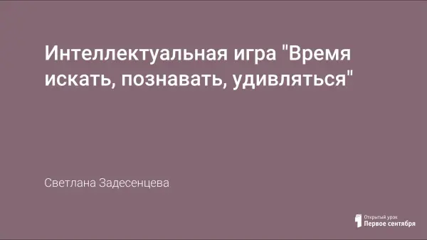 Внеклассное мероприятие, которое проходит в форме интеллектуальной игры. Развивает любознательность, расширяет кругозор, повышает интеллект учащихся. Игра расширяет знания учащихся в различных областях: биология, русский язык, география, математика. Ребятам предлагается выполнить различные задания: ответить на вопросы викторины, решить анаграммы и метаграммы.
