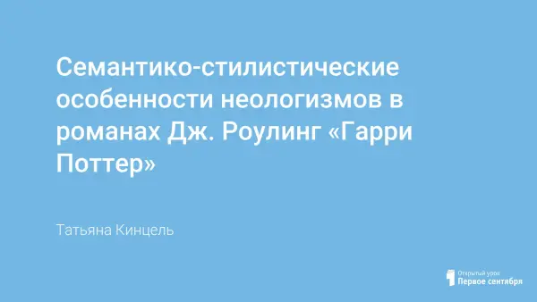 Цель работы - определить семантико-стилистические особенности неологизмов в романах Дж. Роулинг. Составить словарь неологизмов, обратив внимание на их семантико-стилистические особенности. Задачи исследования: изучить теоретический материал по теме; дать определение терминам, используемым в работе; выявить критерии для сравнительного анализа неологизмов и проанализировать их; выявить частоту употребления различных неологизмов в романах; составить словарь неологизмов из романов «Гарри Поттер».