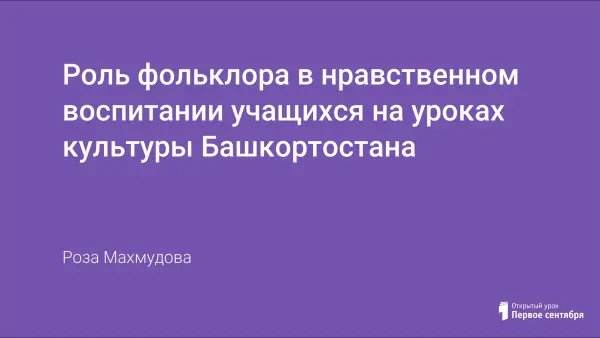Роль фольклора в нравственном воспитании учащихся на уроках культуры Башкортостана