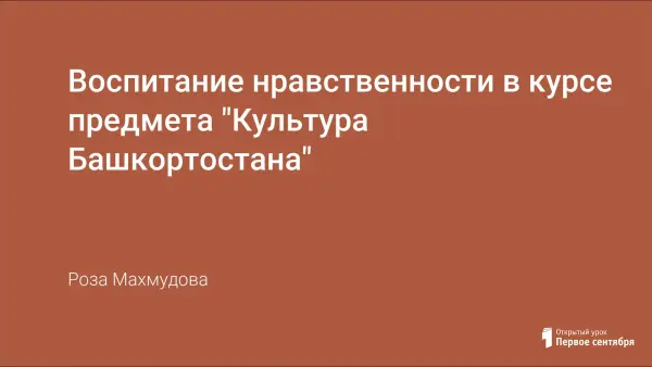 Воспитание нравственности в курсе предмета "Культура Башкортостана"