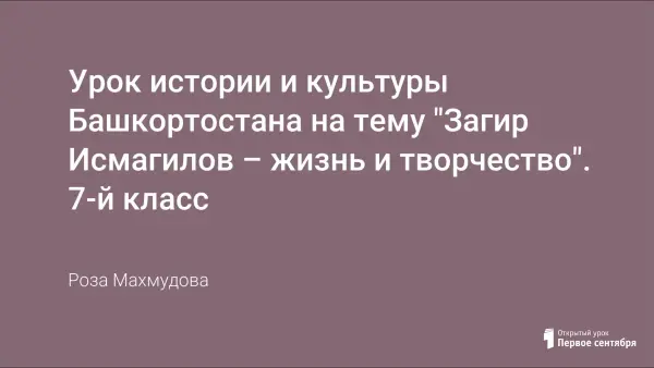 Урок истории и культуры Башкортостана на тему "Загир Исмагилов – жизнь и творчество". 7-й класс