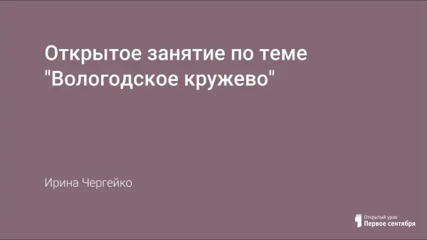 Урок помогает расширить знания детей о народном декоративно-прикладном искусстве, познакомить с произведениями вологодских кружевниц.
