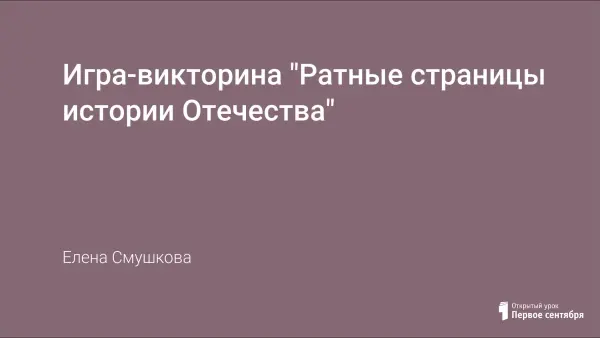 Методические материалы по проведению игры-викторины "Ратные страницы истории Отечества" с использованием комплекта ТСО на базе интерактивной доски "Активный экран". В представленной игре-викторине компьютер используется как источник организованного иллюстративного материала.