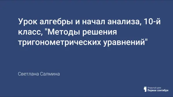 Урок формирует у учащихся умения и закрепляет навыки решения тригонометрических уравнений; дает навыки классификации по методам решений и применения этих методов в новой ситуации.