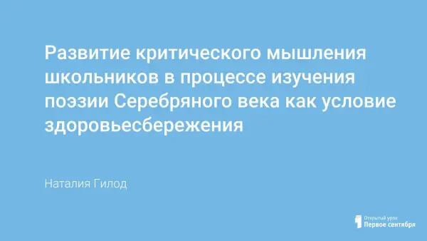Развитие критического мышления школьников в процессе изучения поэзии Серебряного века как условие здоровьесбережения