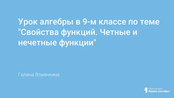 В статье дана подробная разработка урока алгебры в 9-м классе по указанной теме. Вводится понятие четной и нечетной функции, обобщаются и расширяются знания учащихся о свойствах функции, продолжается работа над формированием умения определять и описывать свойства функции по графику.