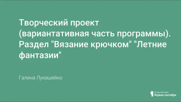 Творческий проект (вариантативная часть программы). Раздел "Вязание крючком" "Летние фантазии"