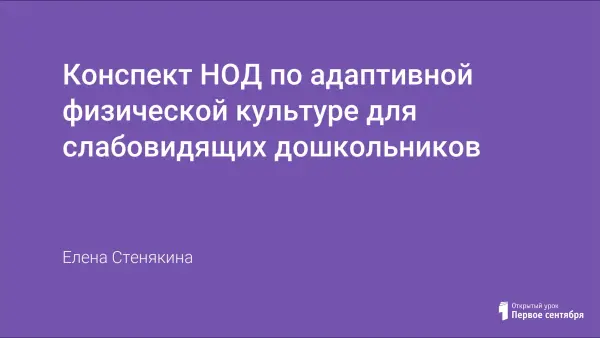 Цели занятия: укрепление физического и психического здоровья детей, воспитание потребности в двигательной активности; восстановление и совершенствование, с помощью средств АФК, физических и психофизических способностей слабовидящего дошкольника.