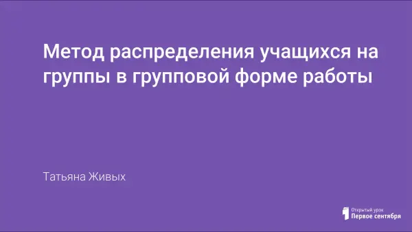 В статье даются определения понятий «группа», «групповая форма работы», классификация групп и групповых форм работы. Приводится методика распределения учащихся на группы с учетом их предпочтений и распределения учителем с учетом различных факторов, таких, как уровень обучения, тип памяти, внимания, восприятия, психологический комфорт в группе и других.