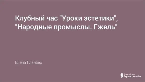 Клубный час ставит своей целью познакомить детей с одним из народных промыслов – поделками гжельских мастеров.