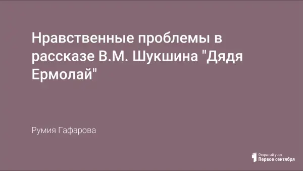 Цель данного урока – помочь детям в понимании героев Шукшина, а через это повлиять на их нравственный мир. Эта цель не одного урока. Она реализовалась на протяжении нескольких уроков.