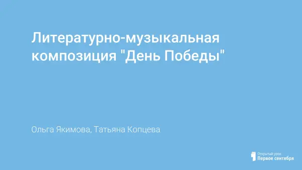 Литературно-музыкальная композиция представлена в исполнении учеников старших классов. В ней выражен взгляд современного молодого поколения на подвиг русского солдата. Звучат слова благодарности в адрес ветеранов Великой Отечественной войны. Завершается композиция словами о мире и недопустимости повторения общечеловеческой трагедии.