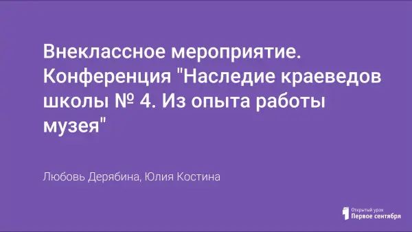 Внеклассное мероприятие. Конференция "Наследие краеведов школы № 4. Из опыта работы музея"