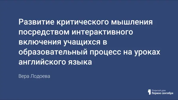 Развитие критического мышления посредством интерактивного включения учащихся в образовательный процесс на уроках английского языка обеспечивает необходимый уровень коммуникативной компетенции учащихся согласно требованиям ФГОС при обеспечении комплекса педагогических условий. В статье рассматриваются эти условия, методы решения задачи.