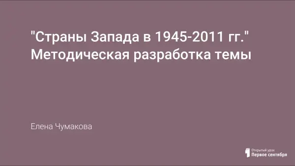 Цель урока: систематизировать знания обучающихся по теме "Страны Запада в 1945–2011 гг.".