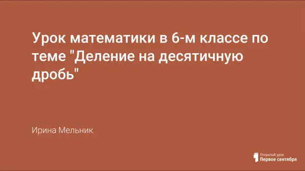 Цели урока: формирование алгоритма деления на десятичную дробь с учетом ранее изученного материала, воспитание мотивов учения, положительного отношения к знаниям, умения учащихся обосновывать свое мнение, уважения к мнениям других, формирование качеств мышления, развитие умений применять знания на практике, умения планировать действия, инициативы и уверенности в своих силах.