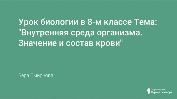 Урок биологии в 8-м классе Тема: "Внутренняя среда организма. Значение и состав крови"