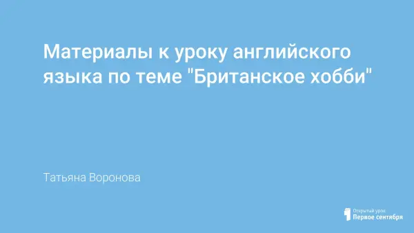 Данные материалы могут быть использованы при подготовке к уроку английского языка по темам «Британское хобби», «Как британцы отдыхают», «Садоводство – одно из самых популярных британских хобби». Задания подобраны по разделам: «Аудирование», «Чтение», «Грамматика», «Письмо». Некоторые виды заданий составлены в соответствии с КИМ для проведения ЕГЭ по английскому языку и могут быть использованы учителями при подготовке к экзамену.