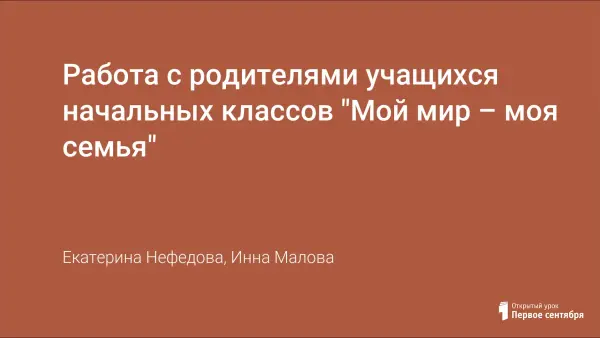 Работа с родителями учащихся начальных классов "Мой мир – моя семья"