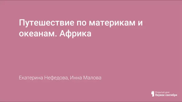 Цели урока: сформировать знания о материке Африка; познакомить учащихся с растительным и животным миром Африки, историей ее открытия; развивать умения читать карту; воспитывать познавательный интерес.