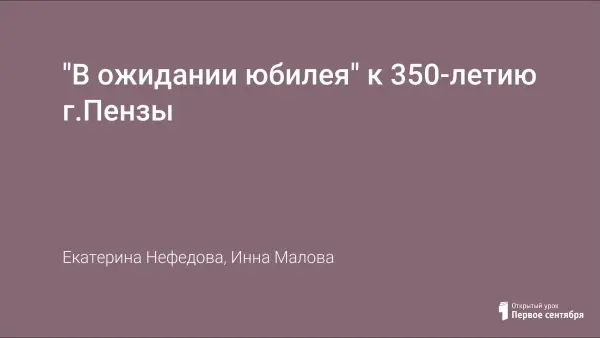 В статье описан ход проведения классного часа, посвященного 350-летию города Пензы. История края - это не только события. Это - имена. Имена людей, оставивших после себя заметный след. Особенно чтим мы тех, кто внес весомую лепту в культуру Отечества. Чтобы быть достойным своих замечательных предшественников, приумножить славу родного края, каждый должен делать что-то нужное, важное и значимое. Быть умелым, знающим, порядочным человеком, приносить пользу людям и любить свою Родину.