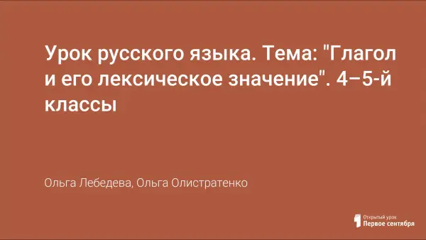 Урок русского языка. Тема: "Глагол и его лексическое значение". 4–5-й классы