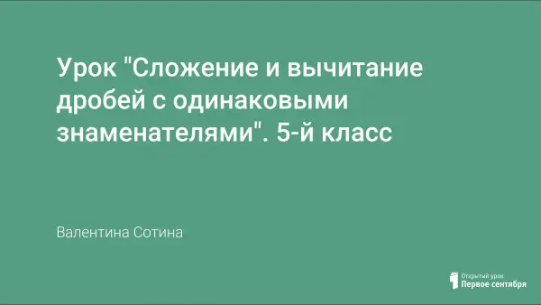 Урок в 5-м классе проводится в разделе «Обыкновенные дроби», где продолжается отработка понятий «числитель», «знаменатель», «правильная и неправильная дроби»; совершенствуются умения складывать, вычитать и сравнивать дроби с одинаковыми знаменателями; формируются навыки применения, полученных знаний при решении задач. Условия задач представлены графически. Этот приём помогает учащимся при анализе ситуации, описанной в простой задаче, помогает разобраться в условиях сложных задач.