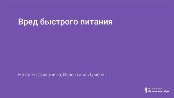 Врачи-диетологи озабочены проблемой быстрого питания: употребление в пищу гамбургеров, чипсов, сухариков приводит к резкому увеличению веса (ожирению) и заметному ухудшению здоровья детей. Урок посвящен вопросам питания и вредным продуктам.