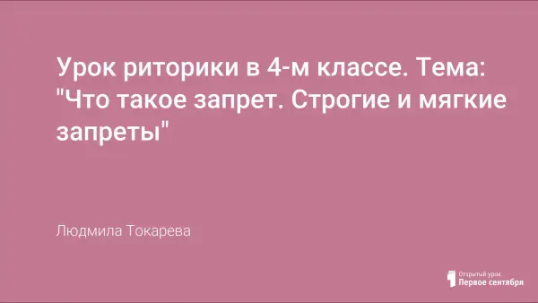 Урок риторики для 4-го класса, на котором дети знакомятся с запретом как видом речевой деятельности, с его особенностями как речевого жанра. На уроке формируется понимание необходимости соблюдения учащимися запретов.